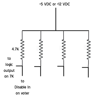 When you turn on logic input #1, it should disable voter channel #1, etc.